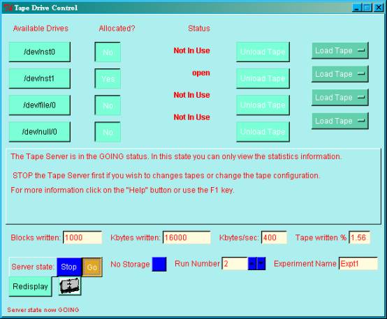 button permits the Tape Server state to be changed. The current state of the Tape Server is shown by the button that