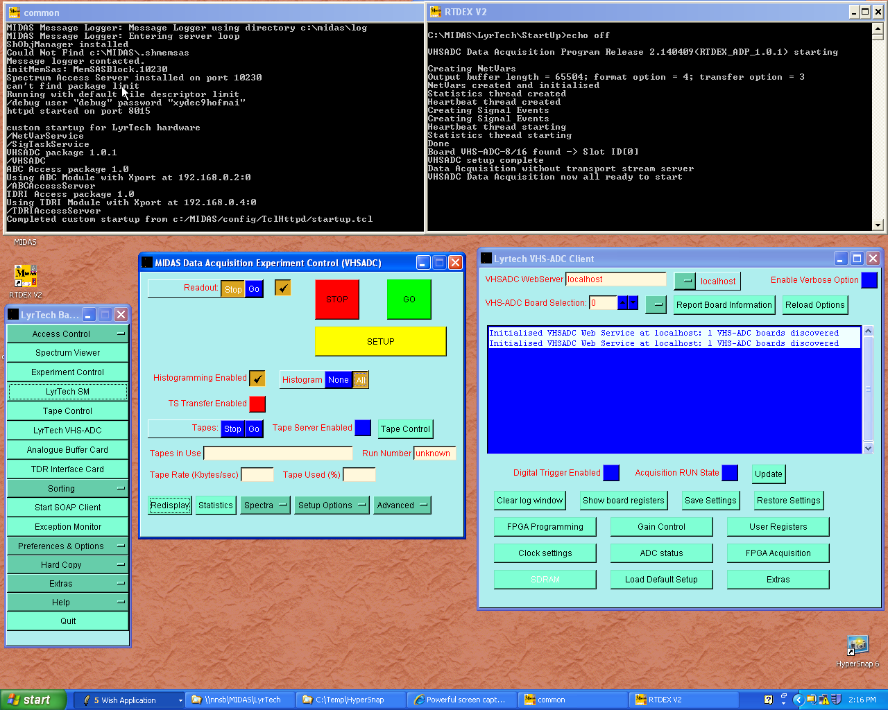 Start the Data Acquisition program for LyrTech by double click on the MIDAS icon labelled RTDEXV4 on the desktop.